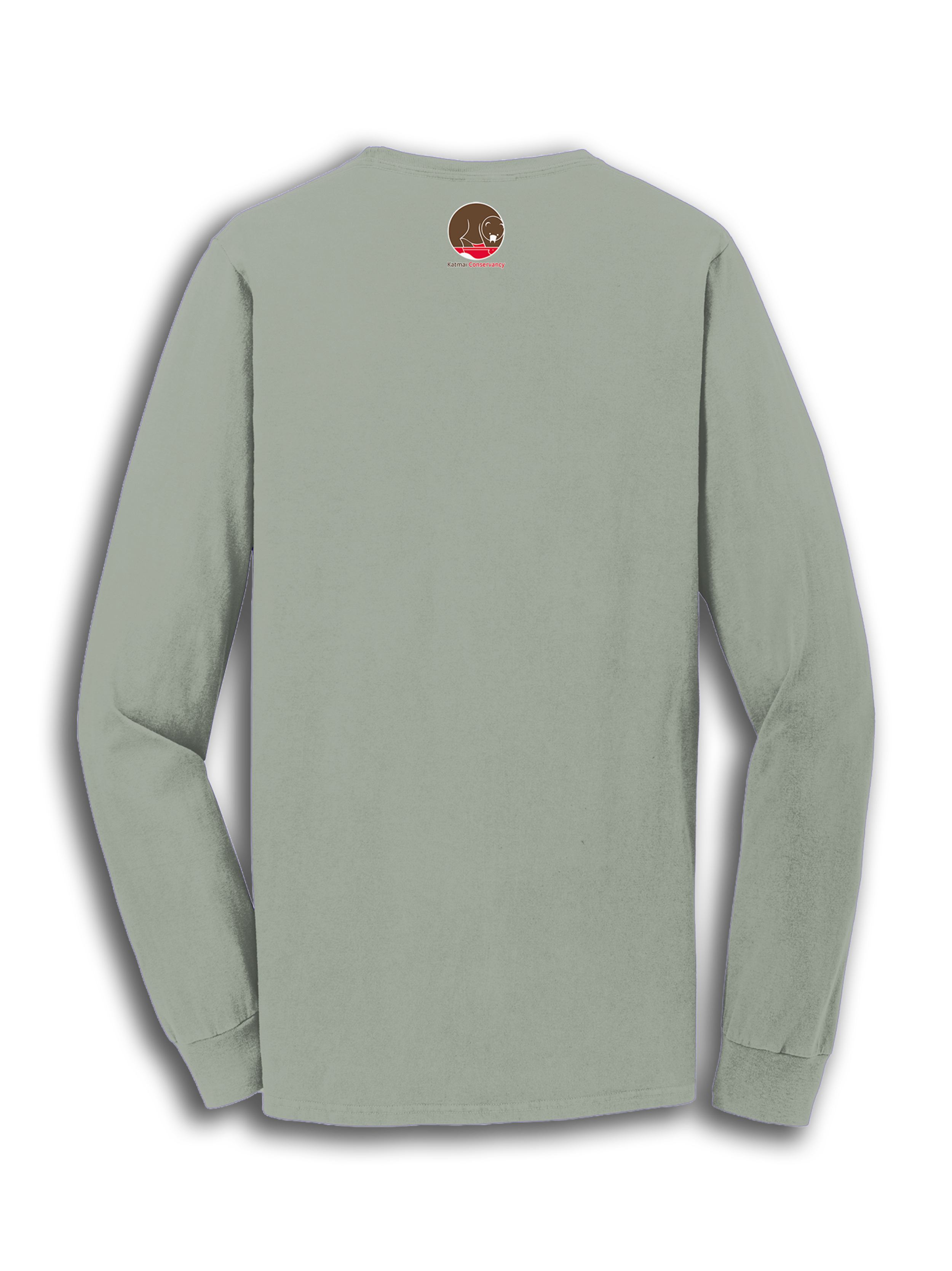 This hoodie features Alaskan artist Valisa Higman’s detailed illustration of Katmai’s famous bear-watching site—Brooks Falls—rendered in crisp white ink against deep black fabric. The result is a high-contrast design that captures the striking beauty of bears fishing in fast-moving water. A small white Katmai Conservancy logo on the front left chest completes the look.